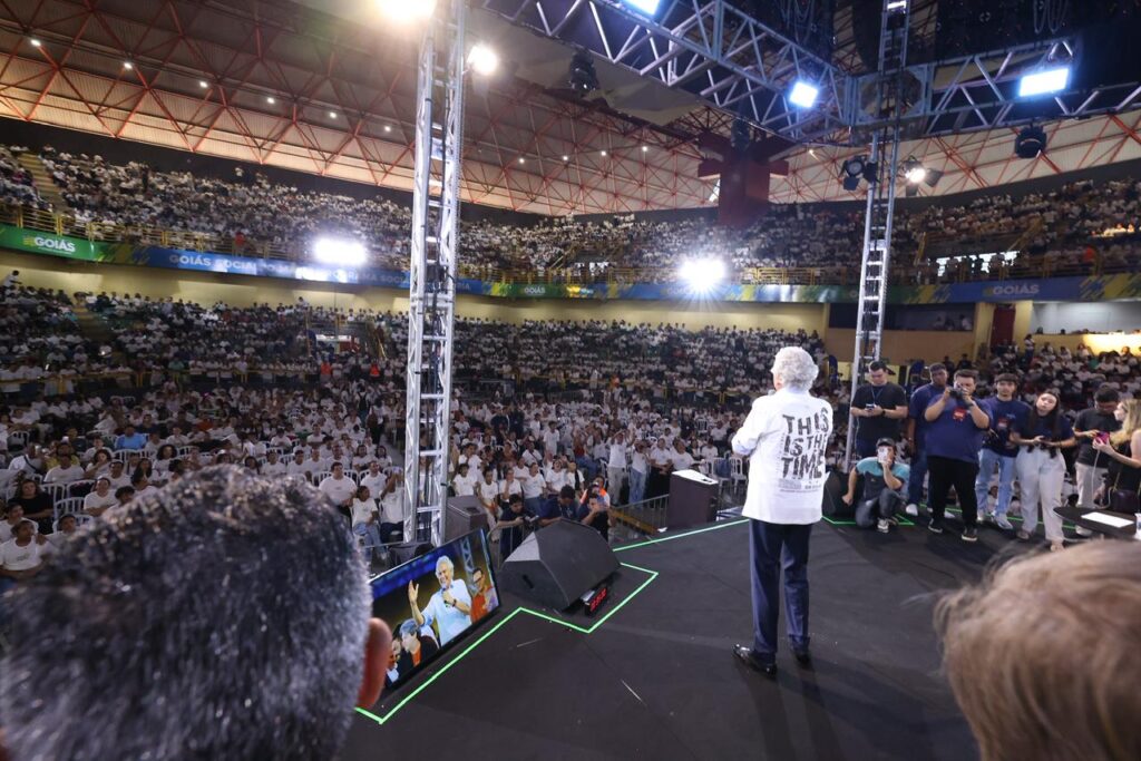 O governador de Goiás, Ronaldo Caiado, participou na noite deste sábado (15) da abertura da Umadego 2026, maior congresso de jovens evangélicos do Brasil. O evento acontece no Goiânia Arena, na capital goiana, e reúne milhares de participantes de diversas regiões do estado e do país.