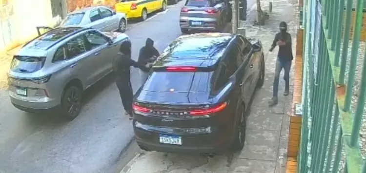 No momento da abordagem, o passageiro percebeu a ação e conseguiu fechar rapidamente a porta do veículo, evitando que os suspeitos tivessem acesso ao interior do carro.